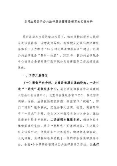 / 【七哥公文】2024年:县司法局关于公共法律服务圈建设情况的汇报材料+更多免费公文+VX:QiGeGongWen2024