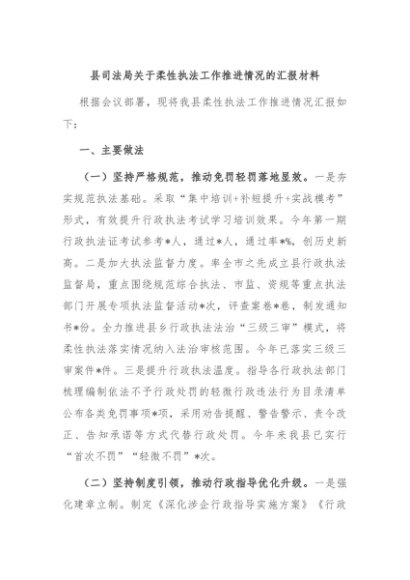 / 【七哥公文】2024年:县司法局关于柔性执法工作推进情况的汇报材料+更多免费公文+VX:QiGeGongWen2024