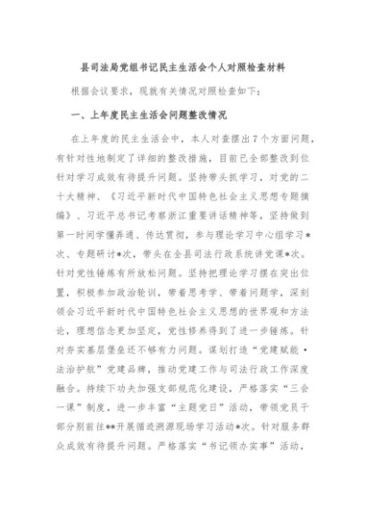 / 【七哥公文】2024年:县司法局党组书记民主生活会个人对照检查材料+更多免费公文+VX:QiGeGongWen2024