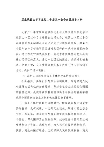 / 【七哥公文】2024年:卫生院医生学习党的二十届三中全会交流发言材料+更多免费公文+VX:QiGeGongWen2024