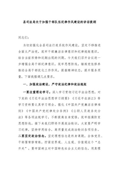 / 【七哥公文】2024年:县司法局关于加强干部队伍纪律作风建设的讲话提纲+更多免费公文+VX:QiGeGongWen2024