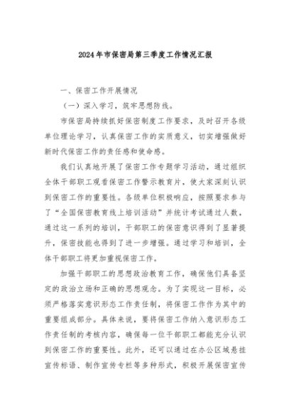 / 【七哥公文】2024年:2024年市保密局第三季度工作情况汇报+更多免费公文+VX:QiGeGongWen2024