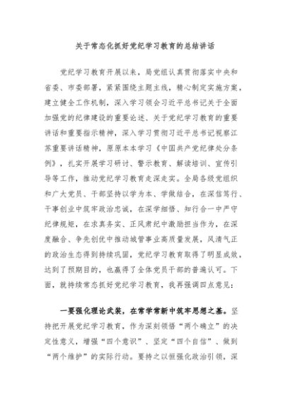 / 【七哥公文】2024年:关于常态化抓好党纪学习教育的总结讲话+更多免费公文+VX:QiGeGongWen2024
