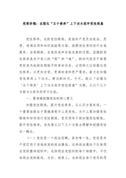/ 【七哥公文】2024年:党课讲稿:在强化“五个修养”上下功夫筑牢党性根基+更多免费公文+VX:QiGeGongWen2024