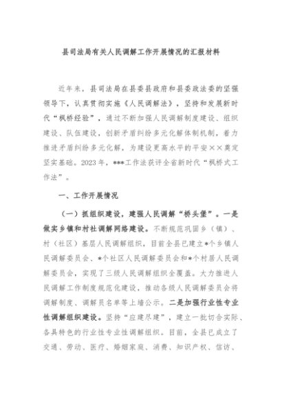 / 【七哥公文】2024年:县司法局有关人民调解工作开展情况的汇报材料+更多免费公文+VX:QiGeGongWen2024