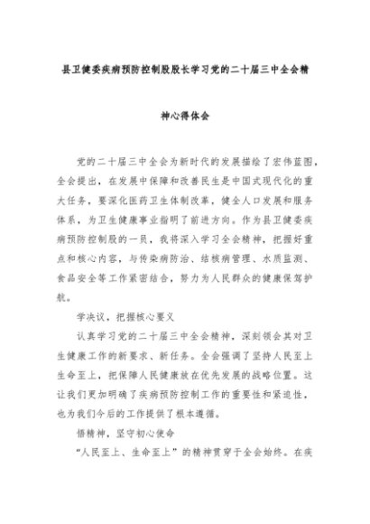 【七哥公文】2024年:县卫健委疾病预防控制股股长学习党的二十届三中全会精神心得体会+更多免费公文+VX:QiGeGongWen2024