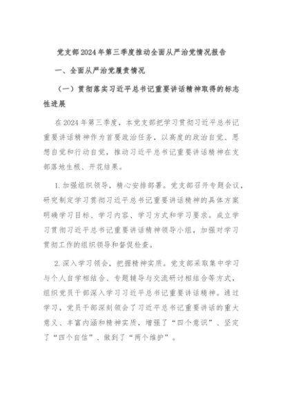 / 【七哥公文】2024年:党支部2024年第三季度推动全面从严治党情况报告+更多免费公文+VX:QiGeGongWen2024