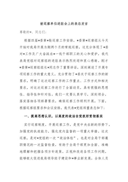/ 【七哥公文】2024年:被巡察单位进驻会上的表态发言+更多免费公文+VX:QiGeGongWen2024