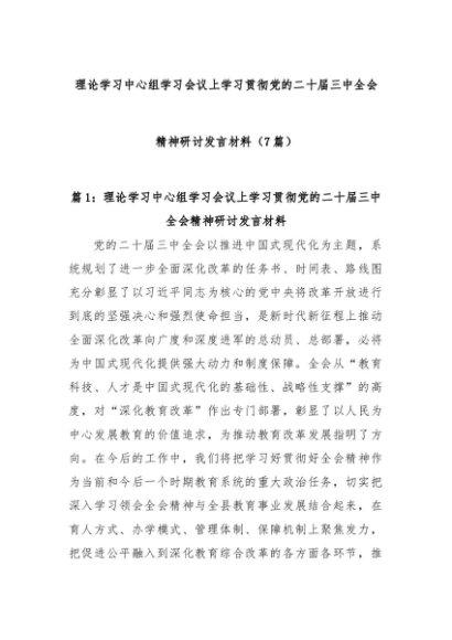 【七哥公文】2024年:(7篇)理论学习中心组学习会议上学习贯彻党的二十届三中全会精神研讨发言材料+更多免费公文+VX:QiGeGongWen2024