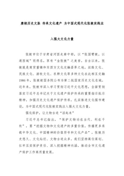 【七哥公文】2024年:赓续历史文脉 传承文化遗产 为中国式现代化张掖实践注入强大文化力量+更多免费公文+VX:QiGeGongWen2024