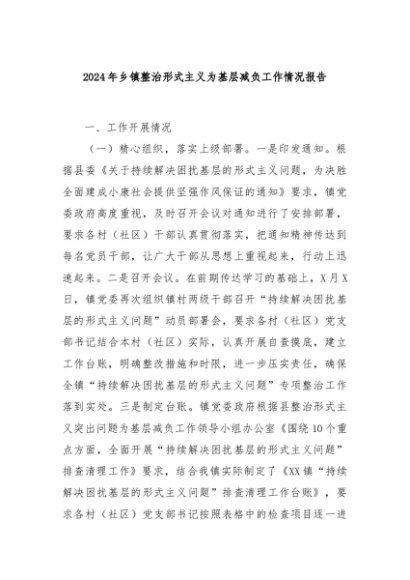 / 【七哥公文】2024年:2024年乡镇整治形式主义为基层减负工作情况报告+更多免费公文+VX:QiGeGongWen2024