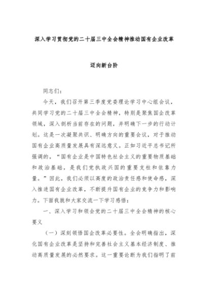 【七哥公文】2024年:深入学习贯彻党的二十届三中全会精神推动国有企业改革迈向新台阶+更多免费公文+VX:QiGeGongWen2024
