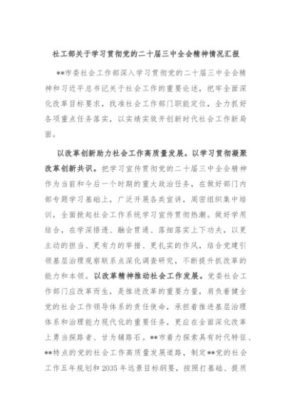 / 【七哥公文】2024年:社工部关于学习贯彻党的二十届三中全会精神情况汇报+更多免费公文+VX:QiGeGongWen2024
