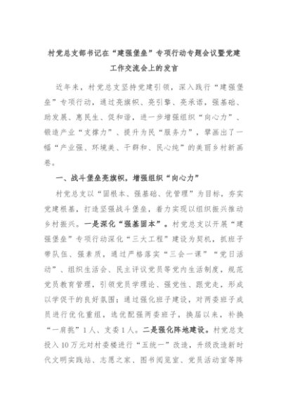 【七哥公文】2024年:村党总支部书记在“建强堡垒”专项行动专题会议暨党建工作交流会上的发言+更多免费公文+VX:QiGeGongWen2024