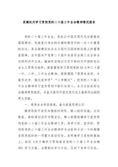 / 【七哥公文】2024年:某镇机关学习贯彻党的二十届三中全会精神情况报告+更多免费公文+VX:QiGeGongWen2024