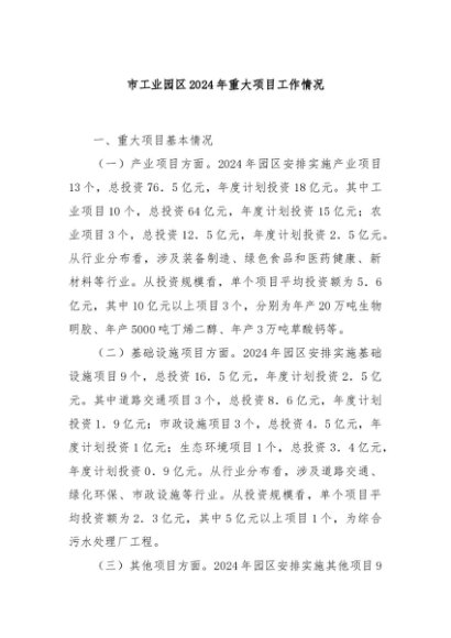 / 【七哥公文】2024年:市工业园区2024年重大项目工作情况+更多免费公文+VX:QiGeGongWen2024