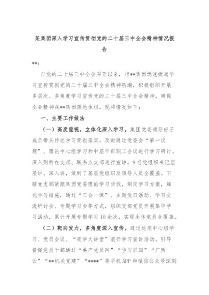 【七哥公文】2024年:某集团深入学习宣传贯彻党的二十届三中全会精神情况报告+更多免费公文+VX:QiGeGongWen2024