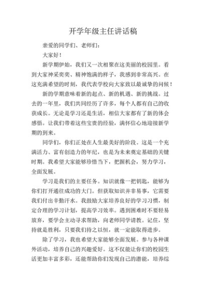 / 【七哥公文】2024年:开学年级主任讲话稿学校+更多免费公文+VX:QiGeGongWen2024