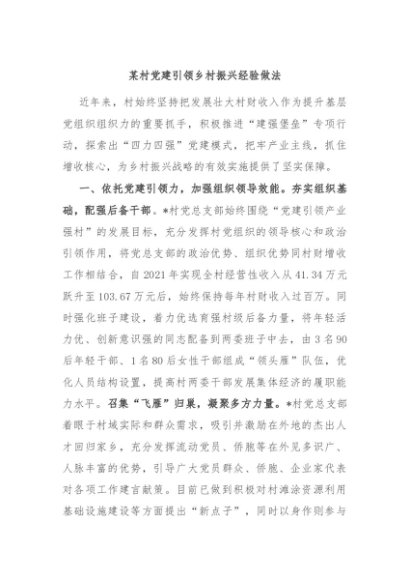 / 【七哥公文】2024年:某村党建引领乡村振兴经验做法+更多免费公文+VX:QiGeGongWen2024