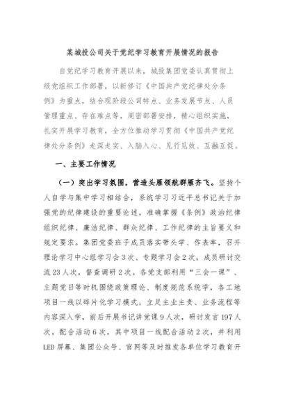 / 【七哥公文】2024年:某城投公司关于党纪学习教育开展情况的报告+更多免费公文+VX:QiGeGongWen2024