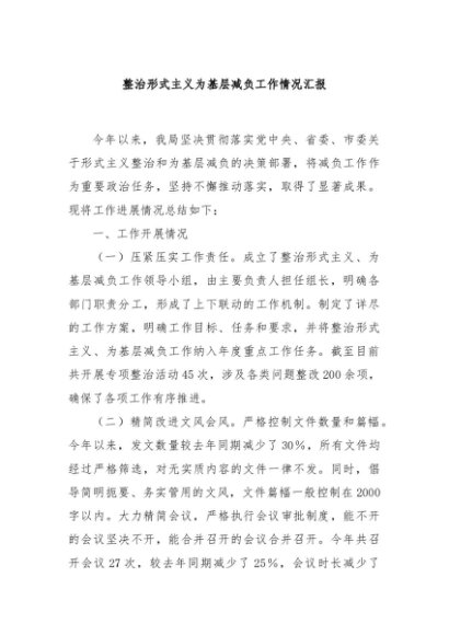 / 【七哥公文】2024年:整治形式主义为基层减负工作情况汇报+更多免费公文+VX:QiGeGongWen2024