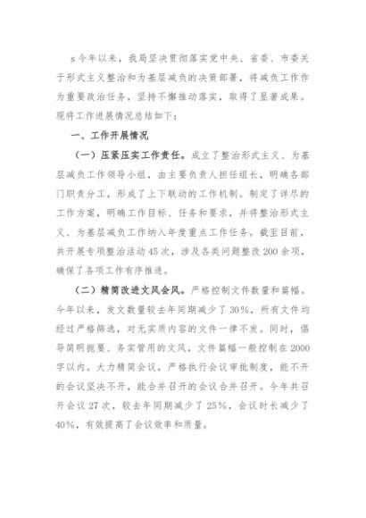 【七哥公文】2024年:局整治形式主义为基层减负工作情况汇报+更多免费公文+VX:QiGeGongWen2024