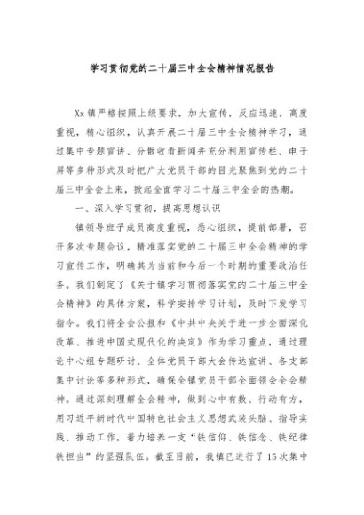 / 【七哥公文】2024年:学习贯彻党的二十届三中全会精神情况报告+更多免费公文+VX:QiGeGongWen2024