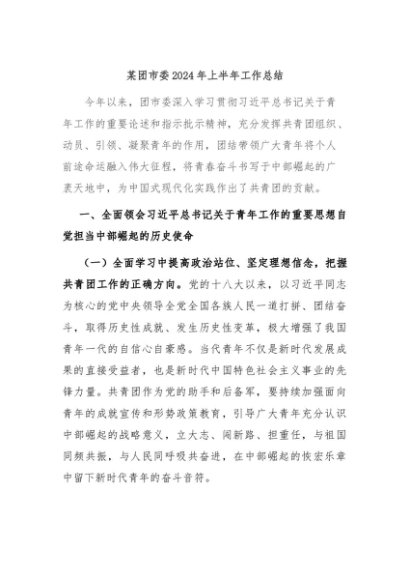 / 【七哥公文】2024年:某团市委2024年上半年工作总结+更多免费公文+VX:QiGeGongWen2024