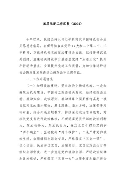 / 【七哥公文】2024年:基层党建工作汇报(2024)+更多免费公文+VX:QiGeGongWen2024