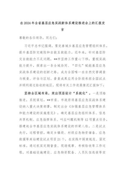 【七哥公文】2024年:在2024年全省基层应急实战新体系建设推进会上的汇报发言+更多免费公文+VX:QiGeGongWen2024