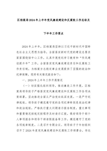 【七哥公文】2024年:区档案局2024年上半年党风廉政建设和反腐败工作总结及下半年工作要点+更多免费公文+VX:QiGeGongWen2024
