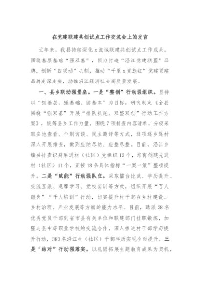 / 【七哥公文】2024年:在党建联建共创试点工作交流会上的发言+更多免费公文+VX:QiGeGongWen2024