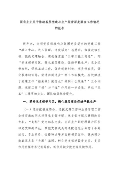 【七哥公文】2024年:国有企业关于推动基层党建与生产经营深度融合工作情况的报告+更多免费公文+VX:QiGeGongWen2024