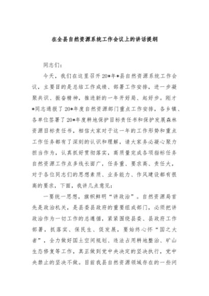 / 【七哥公文】2024年:在全县自然资源系统工作会议上的讲话提纲+更多免费公文+VX:QiGeGongWen2024