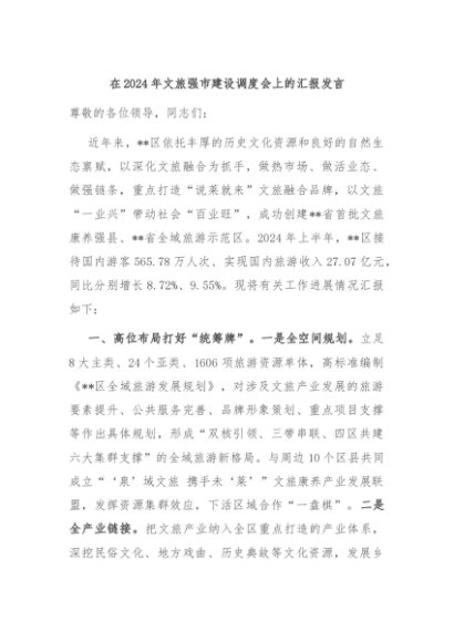/ 【七哥公文】2024年:在2024年文旅强市建设调度会上的汇报发言+更多免费公文+VX:QiGeGongWen2024
