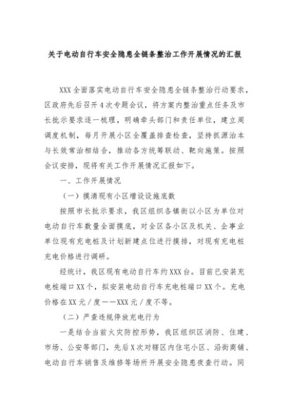 【七哥公文】2024年:关于电动自行车安全隐患全链条整治工作开展情况的汇报+更多免费公文+VX:QiGeGongWen2024