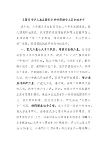 / 【七哥公文】2024年:县团委书记在基层团组织建设现场会上的交流发言+更多免费公文+VX:QiGeGongWen2024