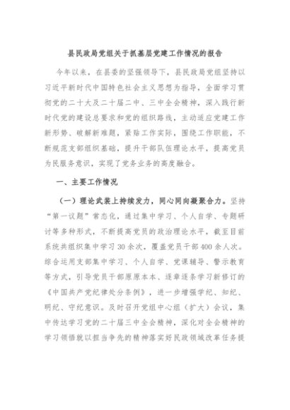 / 【七哥公文】2024年:县民政局党组关于抓基层党建工作情况的报告+更多免费公文+VX:QiGeGongWen2024
