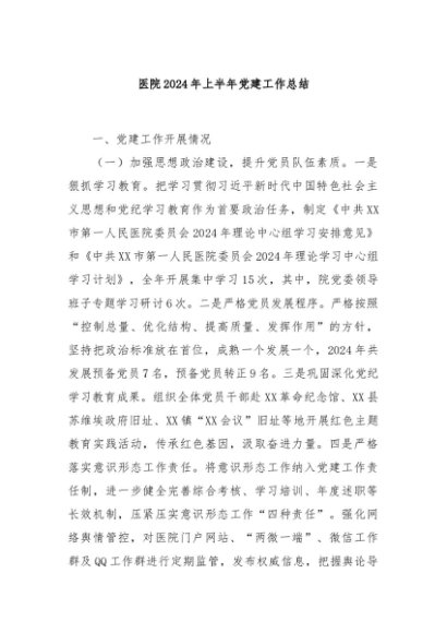 / 【七哥公文】2024年:医院2024年上半年党建工作总结+更多免费公文+VX:QiGeGongWen2024