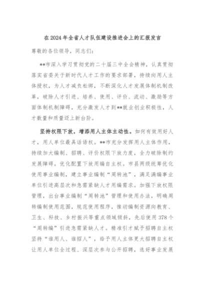 / 【七哥公文】2024年:在2024年全省人才队伍建设推进会上的汇报发言+更多免费公文+VX:QiGeGongWen2024