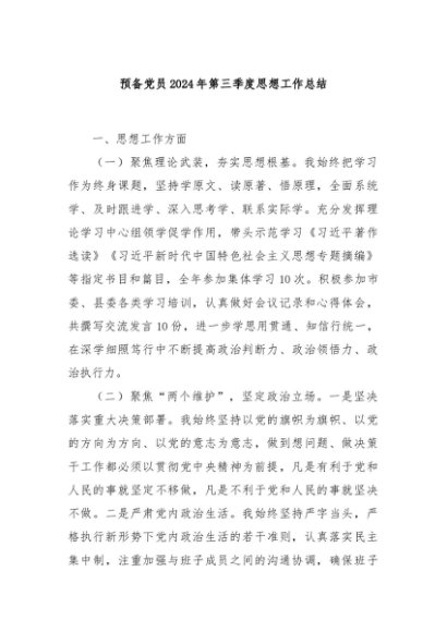 / 【七哥公文】2024年:预备党员2024年第三季度思想工作总结+更多免费公文+VX:QiGeGongWen2024