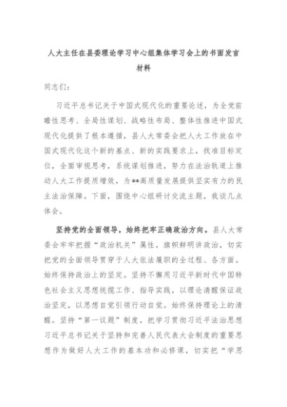【七哥公文】2024年:人大主任在县委理论学习中心组集体学习会上的书面发言材料+更多免费公文+VX:QiGeGongWen2024