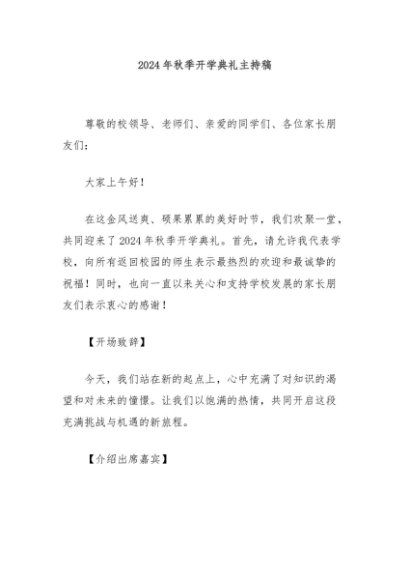 / 【七哥公文】2024年:2024年秋季开学典礼主持稿 (1)+更多免费公文+VX:QiGeGongWen2024