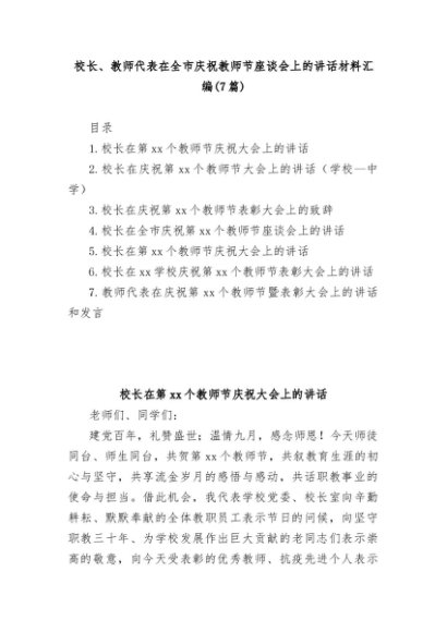 【七哥公文】2024年:(7篇)校长、教师代表在全市庆祝教师节座谈会上的讲话材料汇编+更多免费公文+VX:QiGeGongWen2024