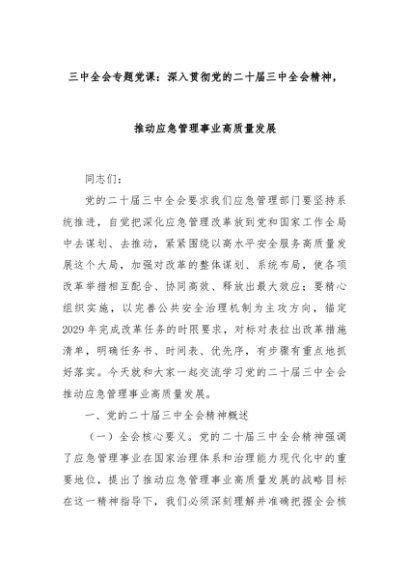 【七哥公文】2024年:三中全会专题党课:深入贯彻党的二十届三中全会精神,推动应急管理事业高质量发展+更多免费公文+VX:QiGeGongWen2024