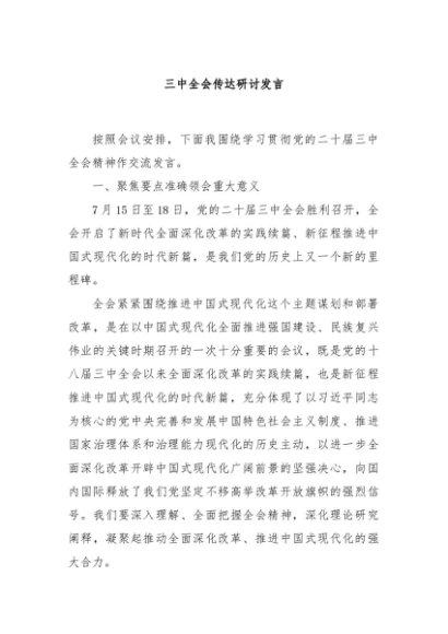 【七哥公文】2024年:三中全会传达研讨发言+更多免费公文+VX:QiGeGongWen2024
