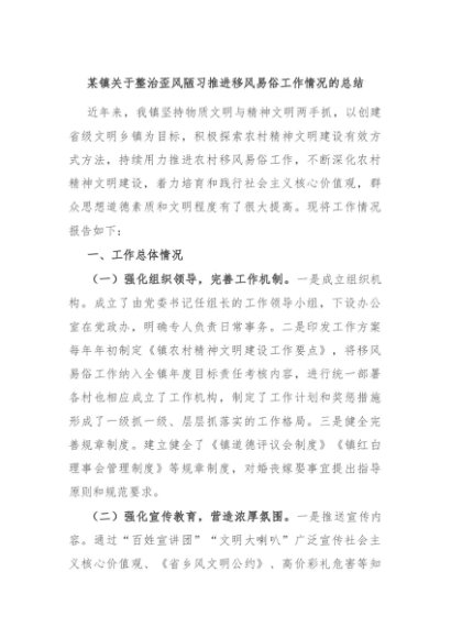 / 【七哥公文】2024年:某镇关于整治歪风陋习推进移风易俗工作情况的总结+更多免费公文+VX:QiGeGongWen2024