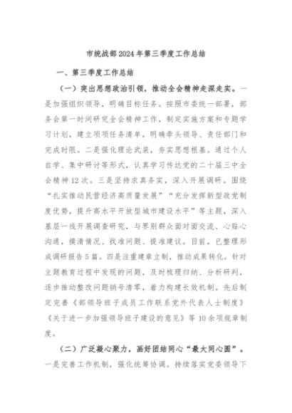 / 【七哥公文】2024年:市统战部2024年第三季度工作总结+更多免费公文+VX:QiGeGongWen2024