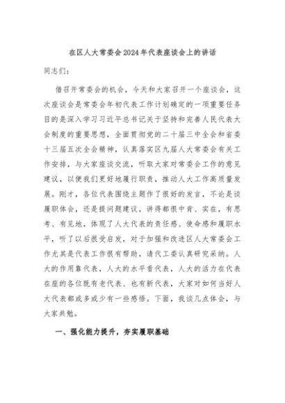 【七哥公文】2024年:在区人大常委会2024年代表座谈会上的讲话+更多免费公文+VX:QiGeGongWen2024