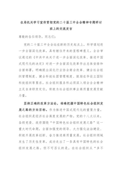 【七哥公文】2024年:在局机关学习宣传贯彻党的二十届三中全会精神专题研讨班上的交流发言+更多免费公文+VX:QiGeGongWen2024